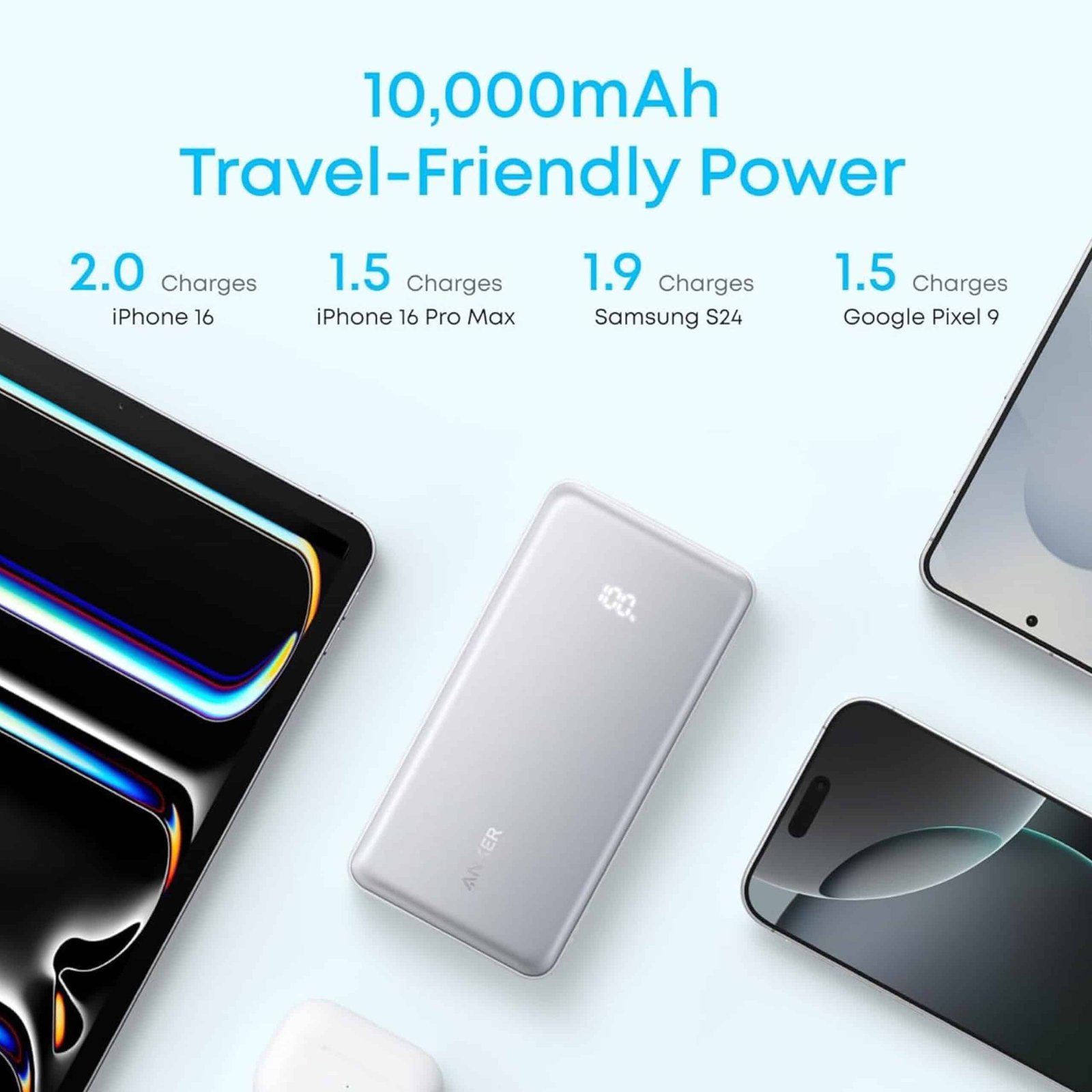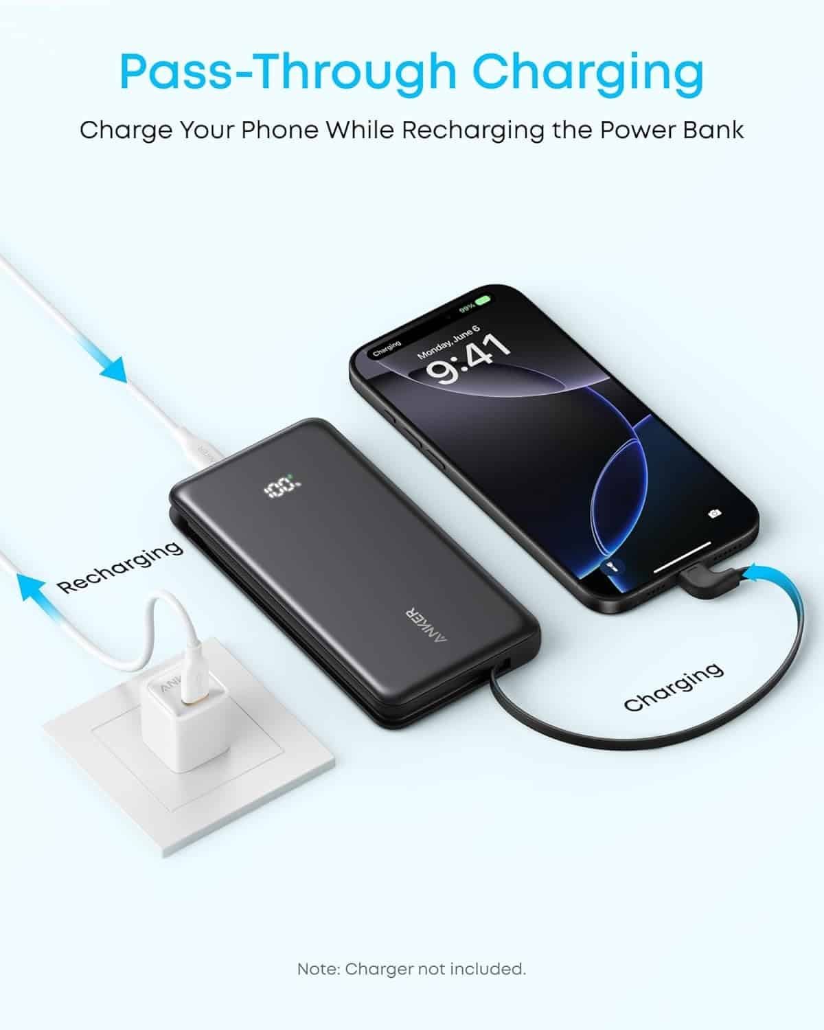 Anker Zolo Slim Power Bank with Built-in USB-C Cable – 10K, 22.5W