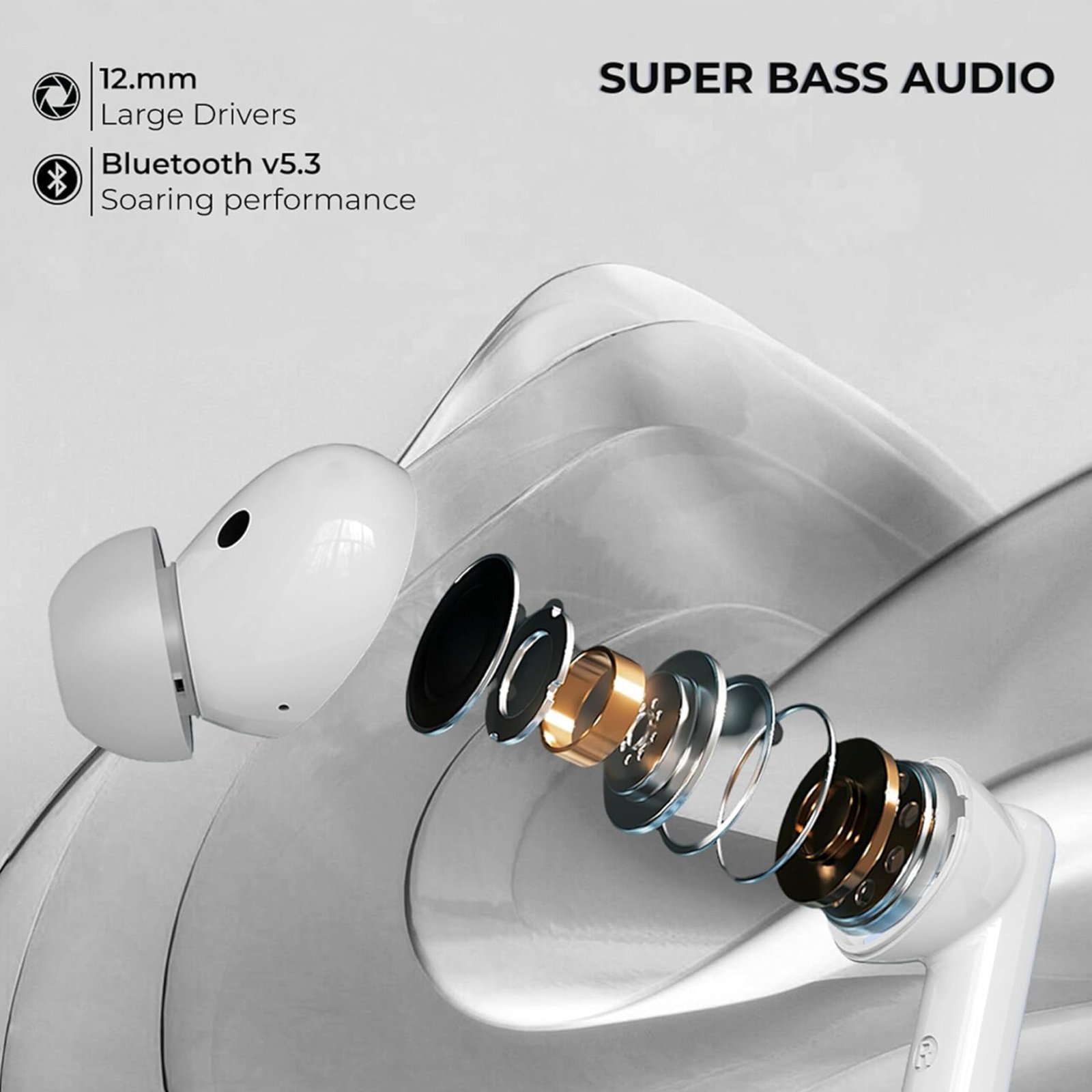 Enjoy faster, more stable connections with the latest Bluetooth version for seamless audio streaming, 12mm Dynamic Bass Drivers, Quad Mic with ENC & ANC: Equipped with four microphones and advanced noise cancellation (ENC & ANC) for crystal-clear calls and immersive audio, 30 Hours Total Playtime + Type-C Fast Charging: Up to 30 hours of playtime with the charging case, plus quick top-ups via Type-C fast charging.