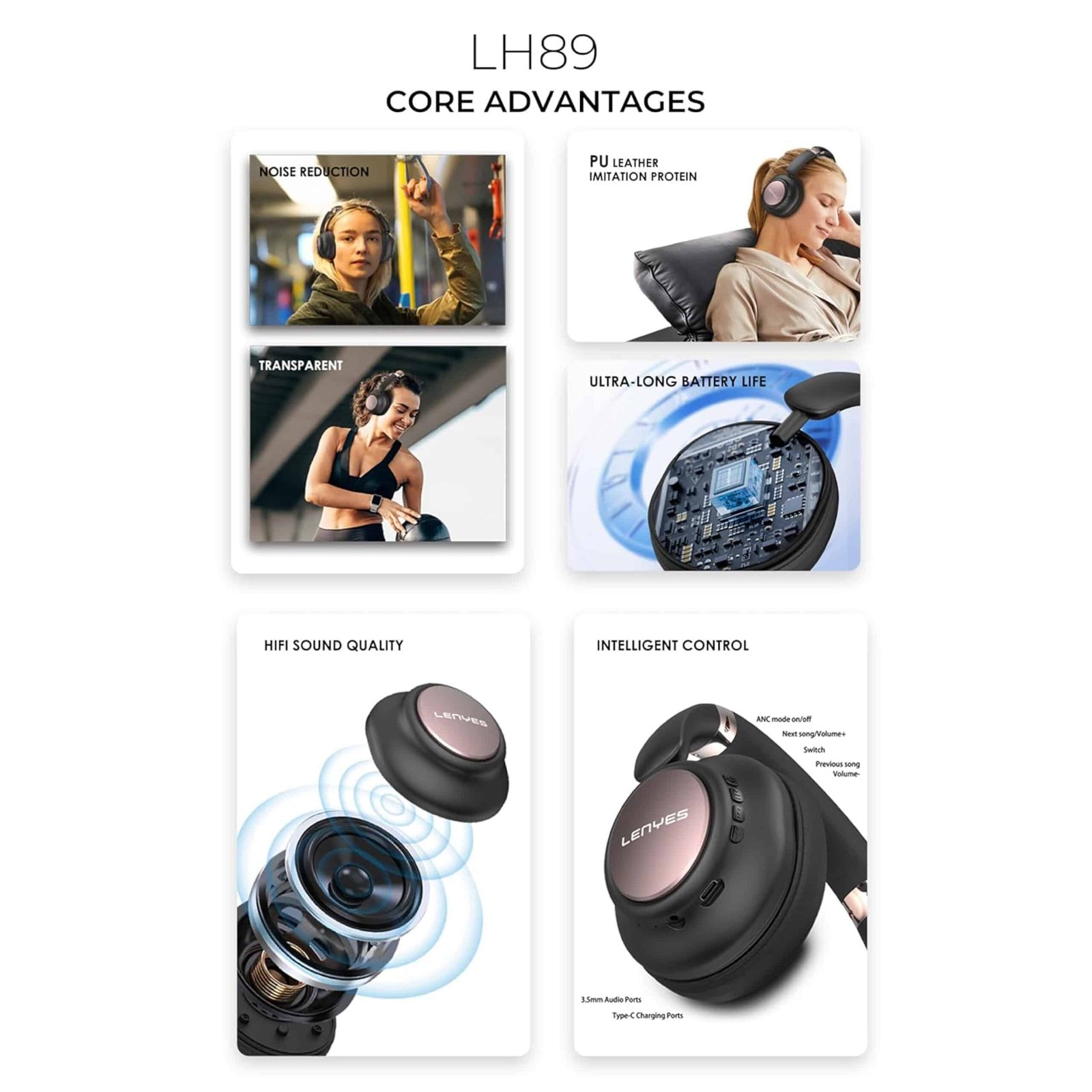 Lenyes LH89 ANC Wireless Headset, Active Noise Reduction , Very Long Playback Time, Foldable for Easy Carrying, High Fidelity, High Quality Sound, Distance: 10-15m, 300mAh with protection Plate
